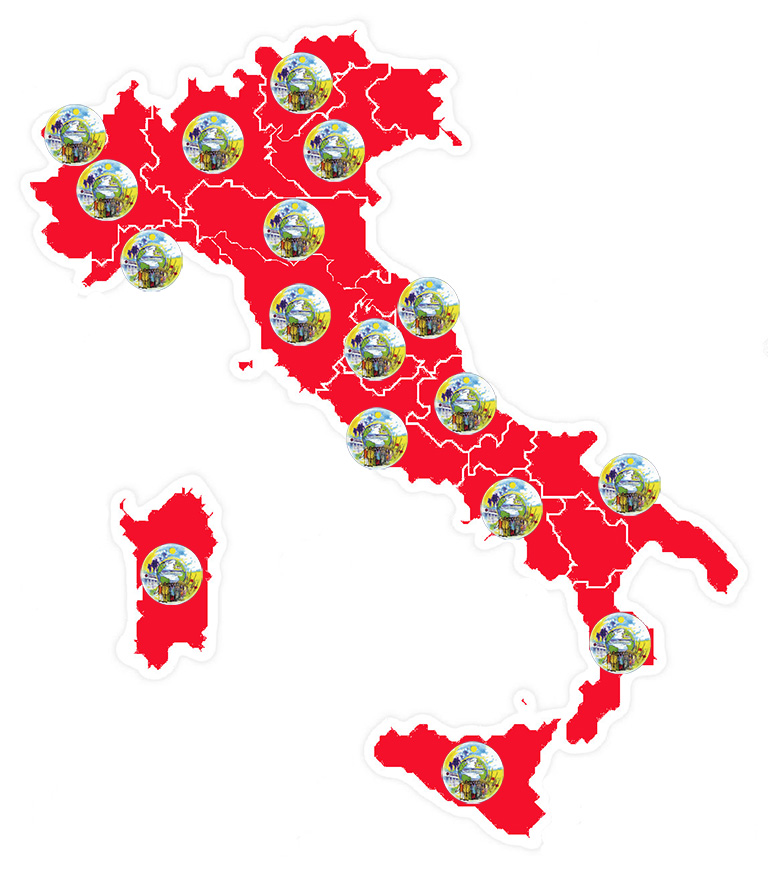 Milan, Turin, Genoa, Bologna, Venice, Florence, Rome, Naples, Palermo, Cagliari, Albenga (Savona), Alessandria, Aosta, Arezzo, Asti, Aulla (Massa), Avellino, Belluno, Bergamo, Biella, Brescia, Busto Arsizio (Varese), Carrara, Casale Monferrato (Alessandria), Catania, Catanzaro, Chioggia (Venice), Como, Cremona, Cuneo, Ferrara, Foggia, Gallarate (Milan), Grosseto, La Spezia, Lecce, Lecco, Lerici (La Spezia), Livorno, Lucca, Macerata, Mantua, Massa, Massa Marittima (Grosseto), Messina, Mestre (Venice), Modena, Montecatini Terme (Pistoia), Monza, Padua, Parma, Perugia, Pescara, Piacenza, Pisa, Pistoia, Porto Azzurro (Elba Island - Livorno), Prato, Reggio Calabria, Reggio Emilia, Rimini, Riviera del Brenta (Venice), Rovigo, Sarzana (La Spezia), Sesto San Giovanni (Milan), Sestri Levante (Genoa), Siena, Trento, Treviso, Urbino, Valdagno (Vicenza), Vercelli, Verona, Viareggio (Lucca), Vicenza.