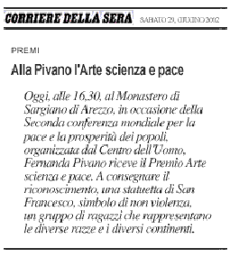 “WORLD CONFERENCE FOR THE PEACE AND WELFARE OF PEOPLES” The prestigious prize was awarded to the pacifist author Fernanda Pivano Experts from every continent debating today at Sargiano