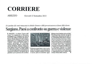 SARGIANO, COUNTRIES DEBATING ON WAR AND VIOLENCE Talks on the menacing winds in the Middle East and abuses of power to the detriment of women
