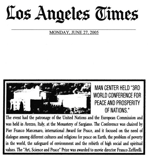 THE "3RD WORLD CONFERENCE FOR THE PEACE AND PROSPERITY OF NATIONS" ORGANIZED BY MAN CENTER UNDER THE AUSPICES OF THE U.N.
