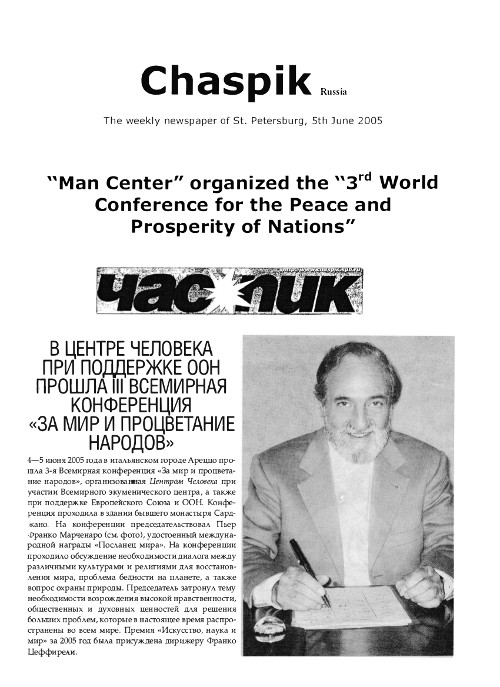 MAN CENTER ORGANIZES THE "3RD WORLD CONFERENCE FOR THE PEACE AND PROSPERITY OF NATIONS" IN MAY 2005