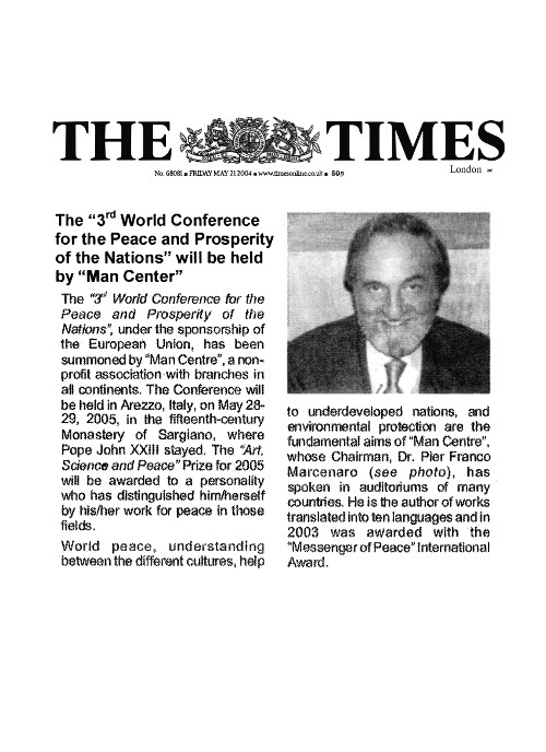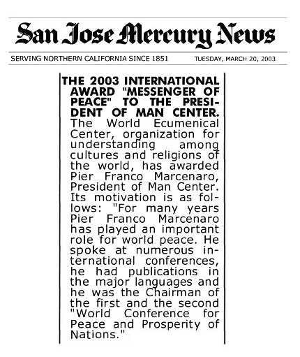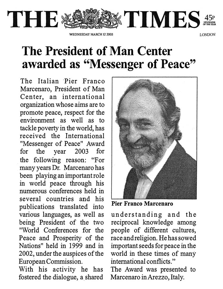 INTERNATIONAL PRIZE "MESSENGER OF PEACE" FOR THE PRESIDENT OF MAN CENTER