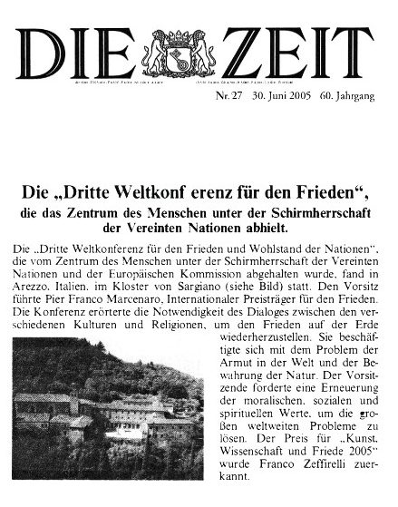 THE PATH OF PEACE STOPS OFF AT SARGIANO The third Conference for the prosperity of peoples opens under the auspices of the UN